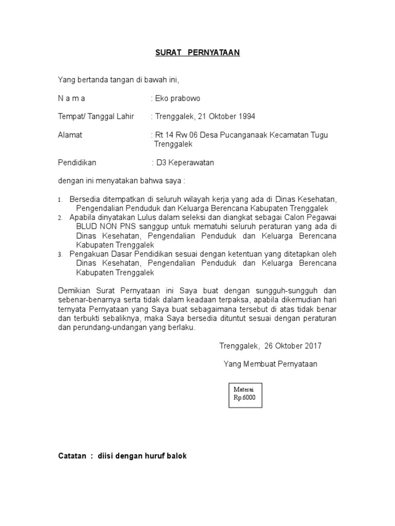 Isi Surat Pernyataan Penempatan CPNS